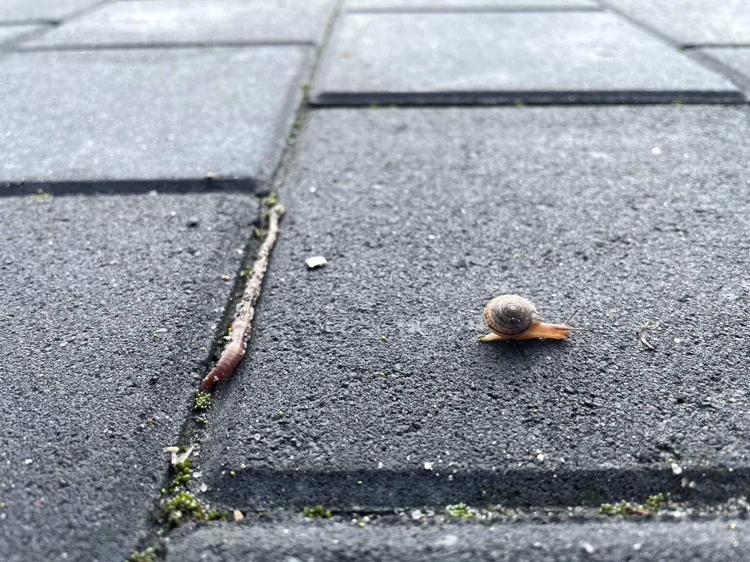 Дуже багато дощових черв‘яків сьогодні. І навіть равлик зустрівся.